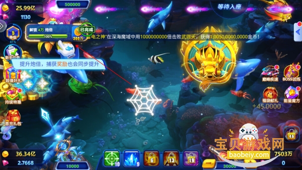 1、在本站下载波克捕鱼官方正版,进入,点击屏幕即可开炮,长按可连续开炮