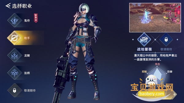 特色:武器手炮、重炮,远程攻击,未来风技能(导弹、电磁炮、火焰喷射器应有尽有),体术