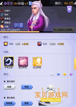 最初身为一个巨星流才是正道的我,发现冲档不行(财力不行)后才发现了这个黑暗中的金子,别看这只是个“明星”但在“古装剧”中实用性是非常非常强的,而且就因为是“明星”所以养成难度也是非常低的。