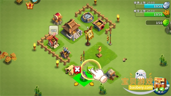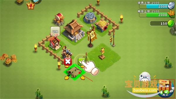 2、建设第一步:兵马未动,粮草先行,我们首先要有自己的农田和银矿!点击商店-资源-选择农田/银矿。