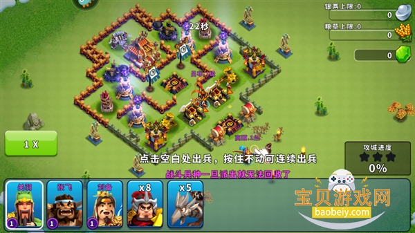 1、指挥官可以自由放置城池中的防御建筑,也可以派遣超级武将战队守卫城池。