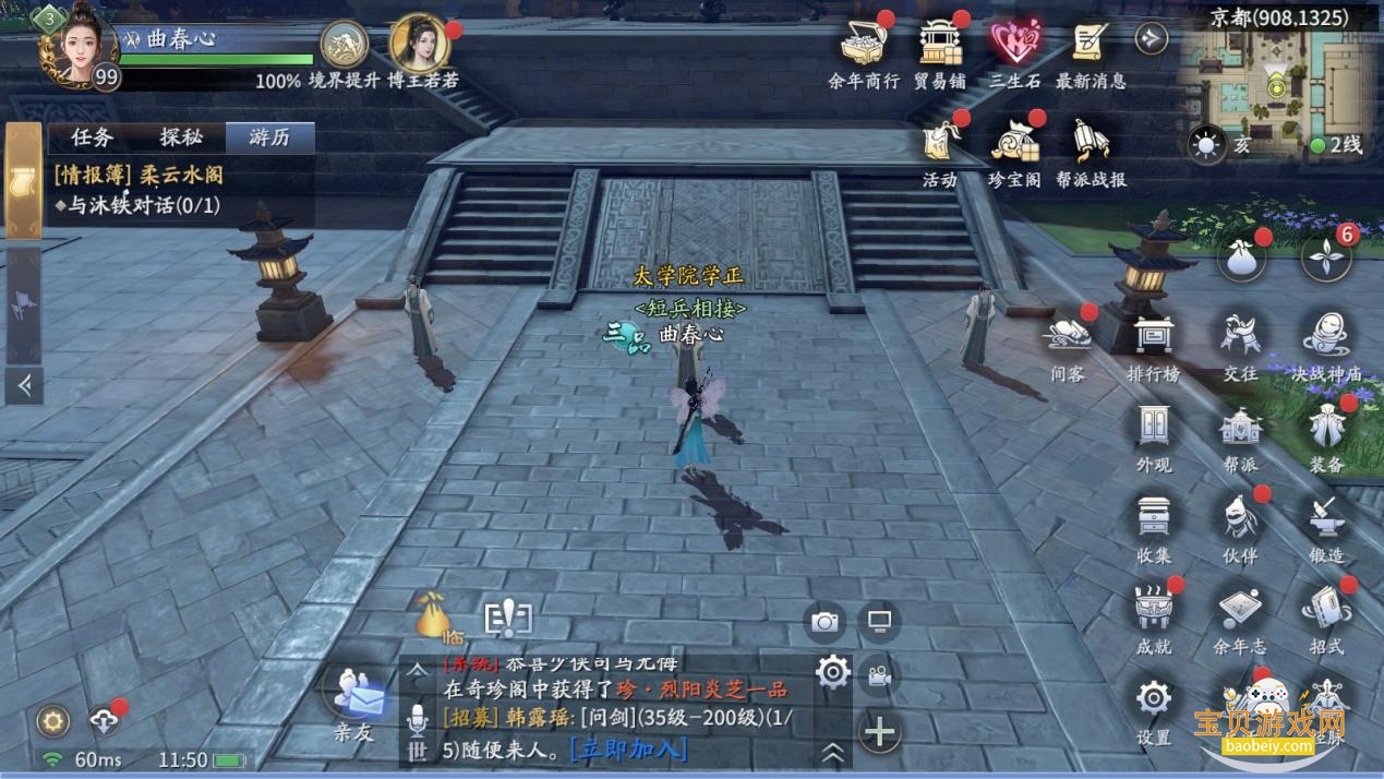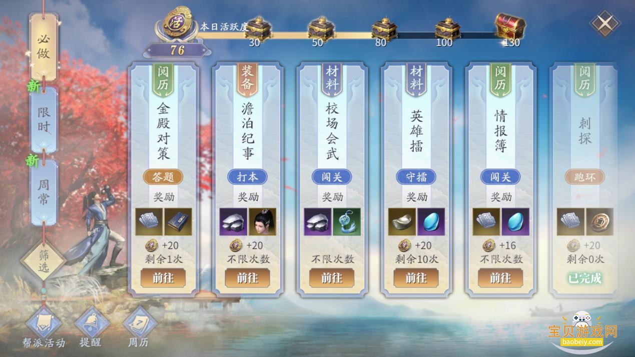 前往京都太学学正处触发,以答题的形式完成,回答五题,无论对错,每题都能获得阅历,答对能获得“30000+40000”阅历,答错减半则获得“30000+20000”。