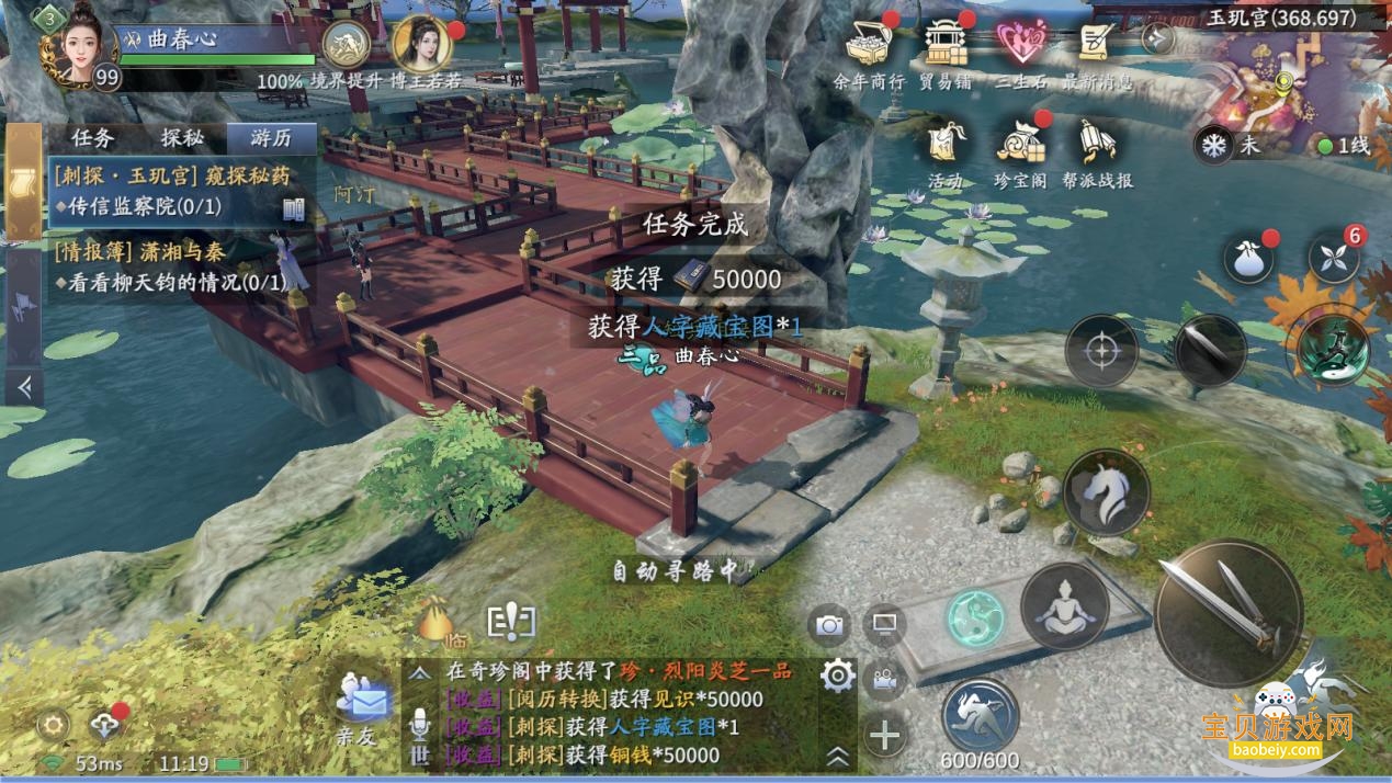 玩家前往随机门派刺探情报,为线性任务,玩家按照提示完成即可,获得得阅历值不等。