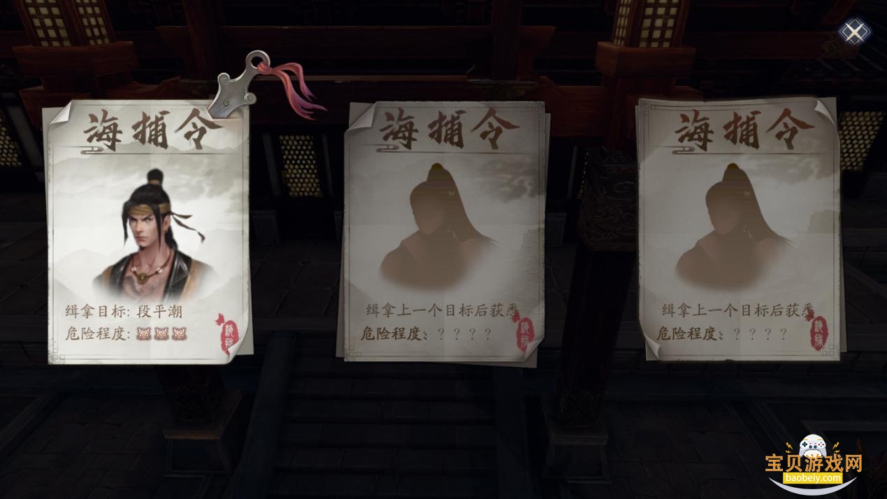 这是一个线性任务,总计三段,在大理寺丞处触发,玩家根据提示单人前往野外击杀特殊怪物获得奖励,野怪为一个BOSS带几个小怪的形式,要小心被围殴。