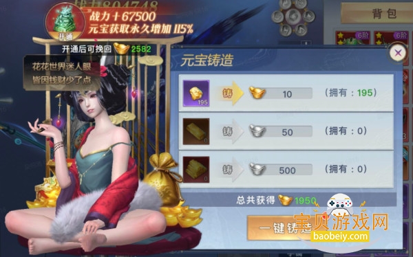 想要获取更多元宝的玩家,可以游戏内购买相关的礼包
