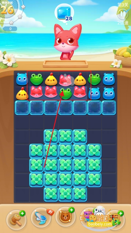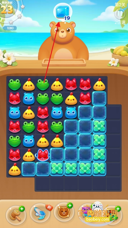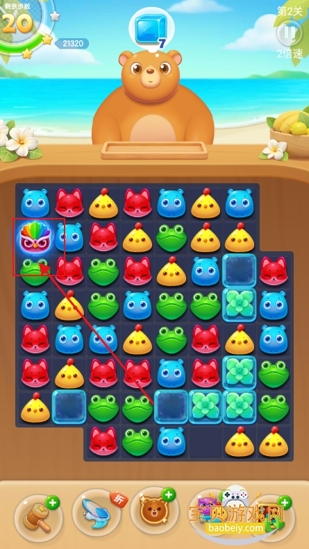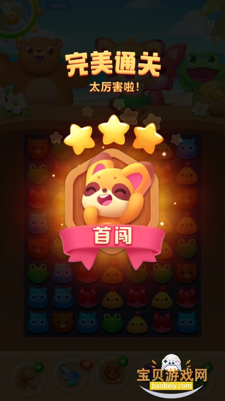 2.炫酷特效与道具系统:拥有多种高阶消除特效,4个同色动物连成直线触发“直线特效”,形成田字格合成“四格爆炸特效”,5个连成直线解锁“魔力鸟”(吸走所有同色动物),6个同色动物可合成“神奇鸟”(吸走两种颜色动物)。此外还有冲浪板、小木槌等道具,任意两个特效交换可触发更强力清场效果,轻松突破高难关卡。