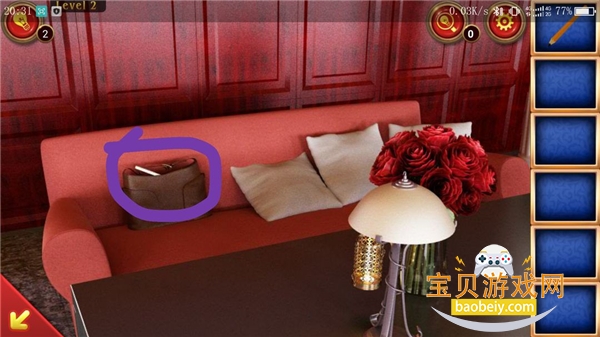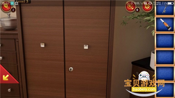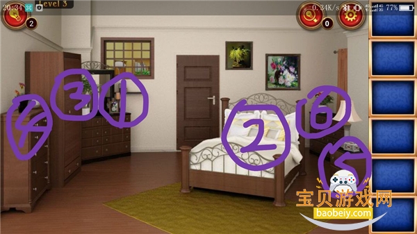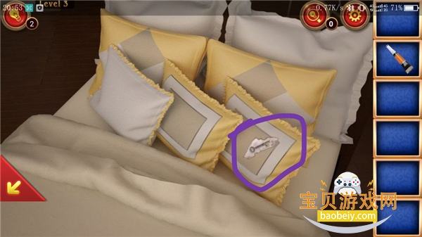 点击②处,点击剪刀再点击枕头,得到一把钥匙