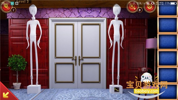点击⑥处,将白色方块放在左边雕像下,从右边雕像下面得到一把钥匙