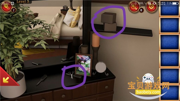 点击①处,得到梳妆台上的剪刀和盒子后面的胶水