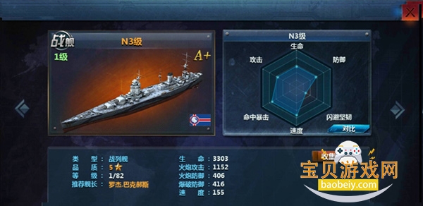 5、第五艘推荐的是N3级战列舰,N3级虽然是A+,但是无论是在火力、防御还是速度上都毫不逊色于S级舰船。可以说N3是为平民玩家量身定做的舰船,技能可以对随机4个目标造成火炮伤害,是阵容里总伤害输出最高的。