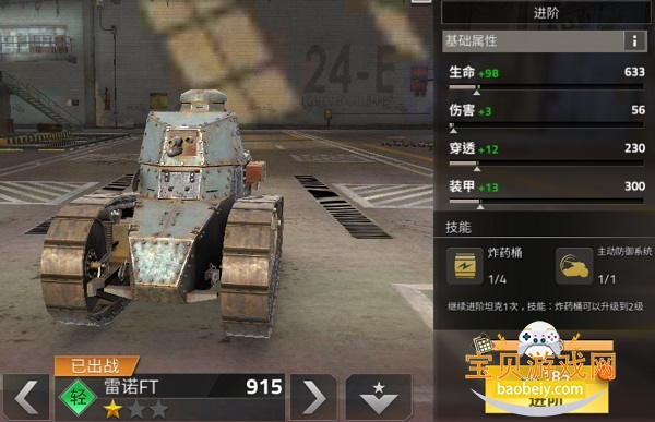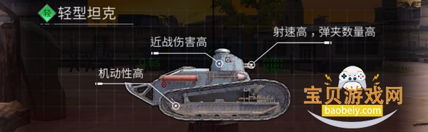 (4)对于冲锋陷阵的指挥官,建议你选择【雷诺FT】,该坦克有5秒自动防护系统+炸药桶,攻守兼备,玩家页可以根据不同的喜好,选择适合指挥官的战车吧!