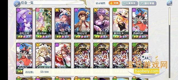 在游戏主页从下方的绘卷入口进入到绘卷页面中,会显示目前所拥有的所有绘卷,在页面可以选择直接显示绘卷的属性以便在装备的时候更好的选择绘卷,同时可以显示强化等级和卡牌的星级。可以在游戏主页右上角的图鉴中的绘卷分页查看获取的绘卷图鉴。绘卷分为三星、四星、五星,五星星级最高,显示为彩色。