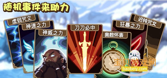 虚弱咒文(降低怪物的伤害)、迟钝咒文(降低怪物的攻击速度)、神速之力(提升攻击速度)、狂暴之力(提升暴击率)、神威之力(伤害增加)、奥术怀表(降低技能冷却时间)、刀刀必中(攻击百分之百命中)都可以一定程度上帮助勇者打怪。记住虚弱咒文和迟钝咒文这两个事件,即使到后期也很有用。