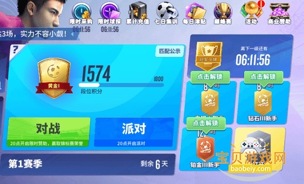 当你把阵容磨合到一定的程度以后PVP对战就是游戏里的最大乐趣,玩家可以透过竞技对战匹配到玩家进行对战不仅可以提升排名获得丰富的赛季奖励还可以积累获胜场次得到球探报告(球探报告可以抽取金卡)。