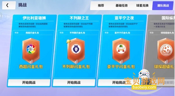 打开页面分别为推荐任务,基础任务,球星兑换和建队挑战。推荐任务不用多看,还是仔细分析后面三个任务大家按自己所需的来比较方便快捷点。