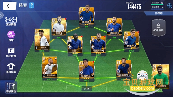我选择了3-5-2 或者3-4-1-2.阵容的搭配我建议优先收集86资质的闪金球员,普通金卡不用刻意搜集,有什么用什么,86资质的球员之所以需要优先获取主要是因为86以上资质的球员每升一阶都可以给予全队加成,非常值得培养。