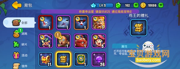 玩家在背包中可查看自己拥有的碎片、消耗等道具,其中的时效宠物以及时效英雄只能使用一定的时间,但仍旧可以进行英雄觉醒。等到下次使用该英雄后会继承上次的觉醒星级,因此玩家尽管放心培养自己心仪的英雄吧!