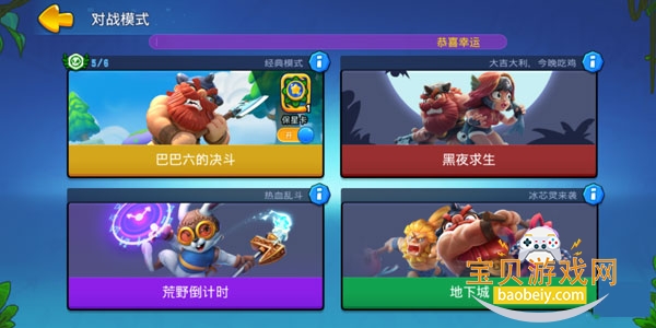 对战模式共有八八六的决斗、黑夜求生、地下城以及荒野倒计时四种玩法,参与所有玩法都需要消耗20点体力。玩家每天在对战模式获得的前六次胜利都可以开启宝箱,可获得金币、碎片等资源。