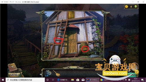 1、仓库,放木桶,把梯子放在木桶上,上阁楼。用钥匙开门。进去。