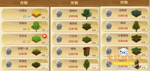 1、农田是影响作物成长的重要元素,也是作坊加工的必备材料,农田数量越多,可种作物数量越多,农场的发展也会越快。每个农田可以种植任意作物或者果树。成熟的农作物将会存放于谷仓之中,如果农作物太多,那么就赶紧升级你的谷仓或者出售出去吧。