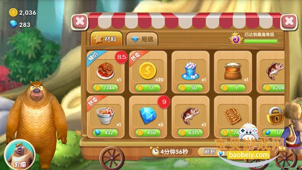 1.背景设定:获《熊出没》官方正版授权,延续动画中狗熊岭的欢乐世界观,光头强放下电锯化身农场主,熊大、熊二、吉吉国王等经典角色变身农场帮工,卡通画风还原阳光田园场景,营造轻松治愈的游戏氛围。