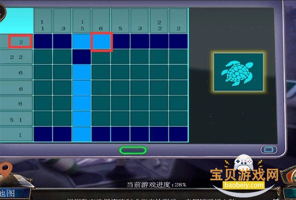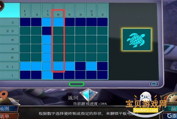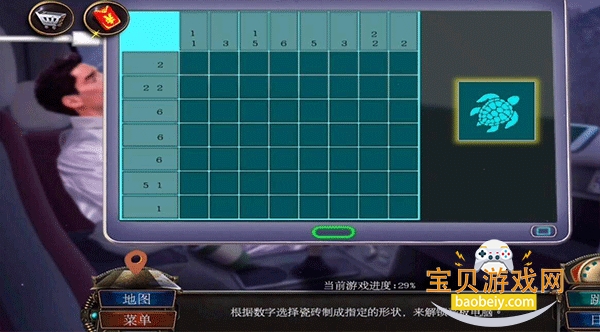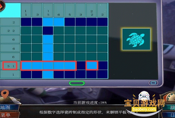 2、会进入乌龟平板的小游戏,需要根据数字选择瓷砖制成指定的形状,来解锁平板电脑。