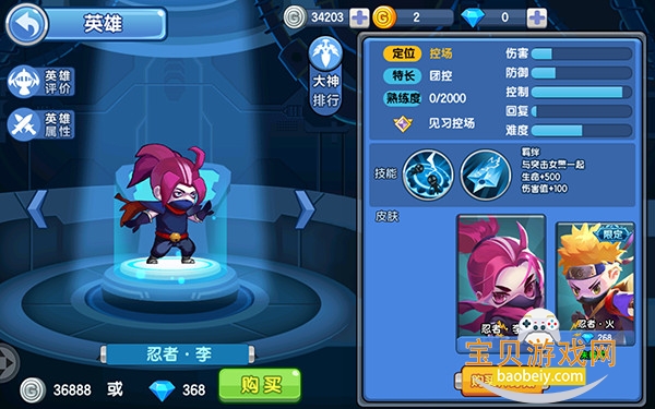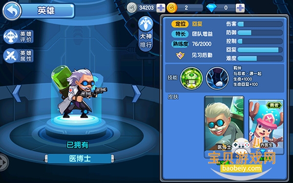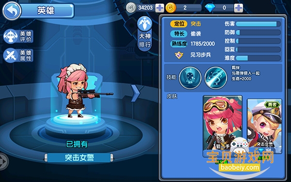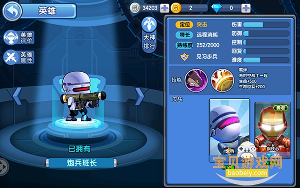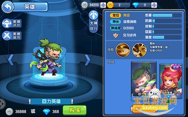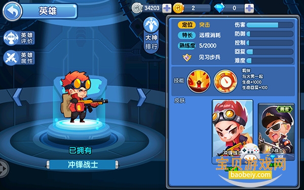 游戏提供了多种类型的英雄以适应不同玩家的喜好:突击型、回血型、防御型和控场型英雄。