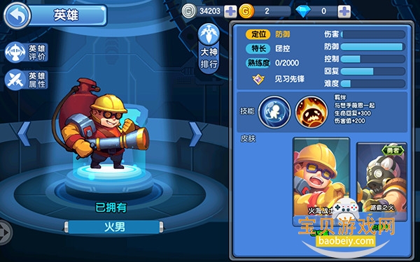 虽然输出不高,但是拥有超强的防御能力,记住作为坦克爸爸,要勇敢的冲在队友前面,为团队提供无私的帮助。另外,火男的普通攻击可以穿透墙壁,在特殊地形中十分有用。