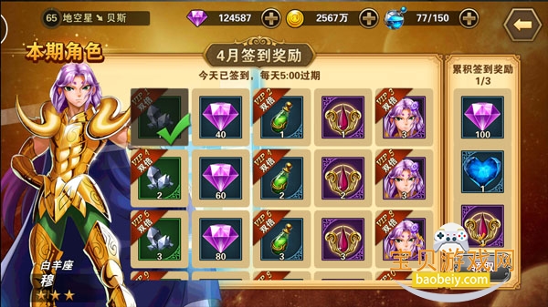 圣斗士的强大离不开每日辛勤的磨砺,同样的玩家们想要提升自己的战斗力,也不要忘记每天的签到。每日签到的奖励都不相同,不仅有金币、材料,还有钻石的奖励哦。而且不单单是每日签到可以领取奖励,累积签到达到指定次数也可以领取到不错的奖励哦。