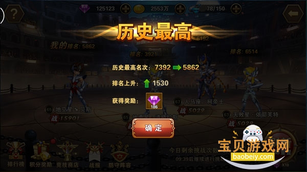 每个玩家在竞技场突破自身历史最高排名都可以获得大量钻石的突破奖励,而且每日竞技场结算时也会根据玩家当前的竞技场排名发放对应的钻石奖励。在这里,只有强者才能获取属于自己的荣耀,而钻石,这是对强者的奖励。