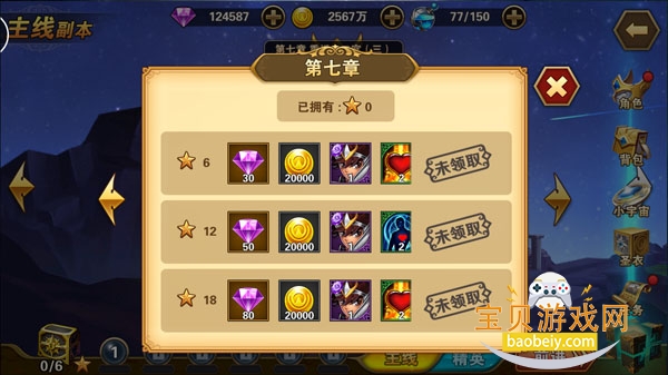 通关主线副本和精英副本后根据副本通关情况会获得不同的星级评价,每章节星级达到对应值后可以点击章节宝箱领取。不要小看这点钻石哦,前期累积下来也是一笔不小的财富哦。