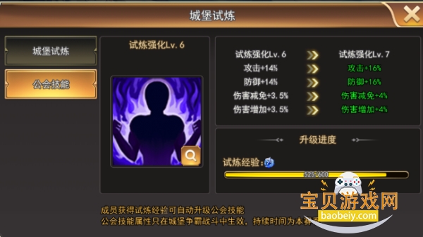 ②试炼经验用于升级工会技能(只适合于城堡争霸活动中)