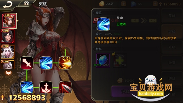 尽管不同的突破解锁不同的效果,但总体来说,突破7突破9突破11,这三个是质变,让英雄发挥脱胎换骨的变化。而相比之下,突破10突破12只是单纯强化属性,所以说突破有个小技巧,突11以后先升星,升星满在去突破12,这样不仅能节约珍贵的突破资源,还能最大化强化属性。