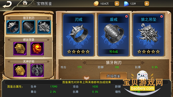 除此之外, 宝物还有一个图鉴系统,当获玩家取到图鉴所需宝物的时候可以激活一定的额外属性,而且在图鉴所需宝物升星后,也可以升级图鉴属性。不过值得一提的是宝物获取速度很慢很慢, 所以提醒小伙伴们,不要去强行的去把图鉴升满,只选择我们需要的属性,以及宝物。图鉴这个东西要细水长流,不能急哦。