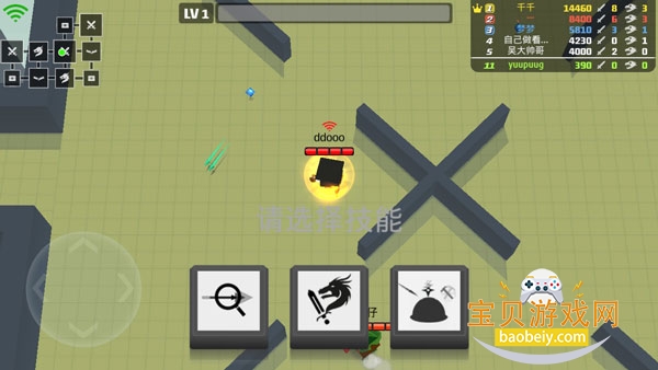 在刚进入游戏是会让玩家选择一个技能,可能出现的技能会有飞镖,火炮,激光,斧子和弓箭加强。