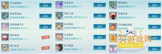 富贵袋任务会给15个不同任务。其中王朝战备、典藏月卡、经典月卡和师门任务需要额外花费军资。无双城系列任务可能被敌对势力杀掉,需要等大佬清场。如果不想冒险,建议买小月卡代替。