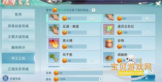 这种办法收益稳定且不用支付税金,但利润较低。具体步骤如下:打开声望商店中的【手工工坊】页面,找到离火精和通灵五色石(背景颜色明显不同),点击购买。