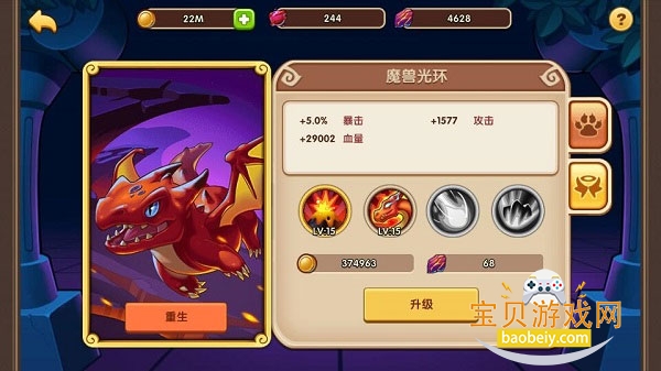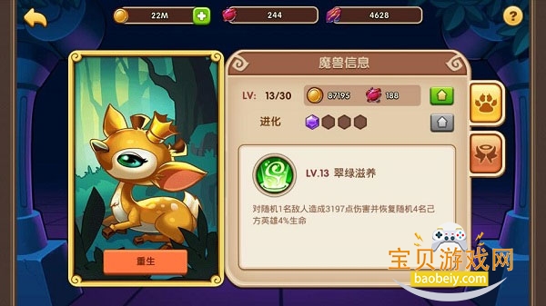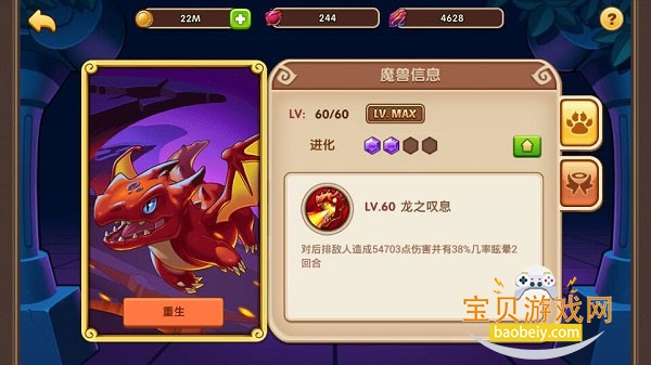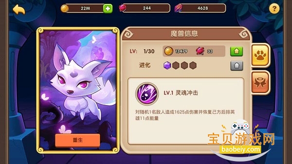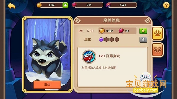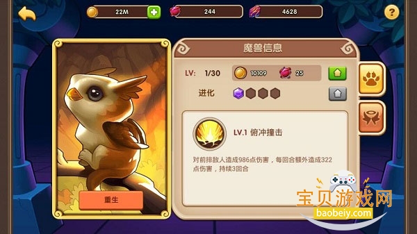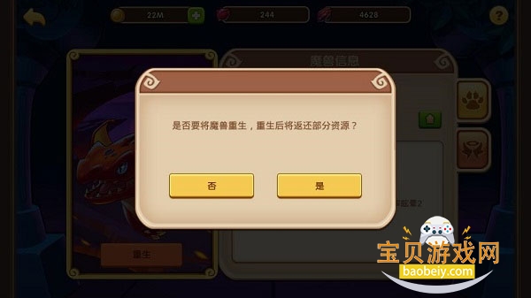 PS: 如果你发现自己培养错了魔兽也没关系哦,我们提供了重生功能,可以返还部分消耗材料,免除你的后顾之忧。