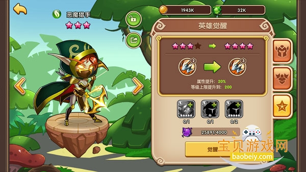 英雄觉醒:当英雄达到一定等级后,可以给英雄进阶,进阶提升英雄的属性并且让英雄的技能变得更强。