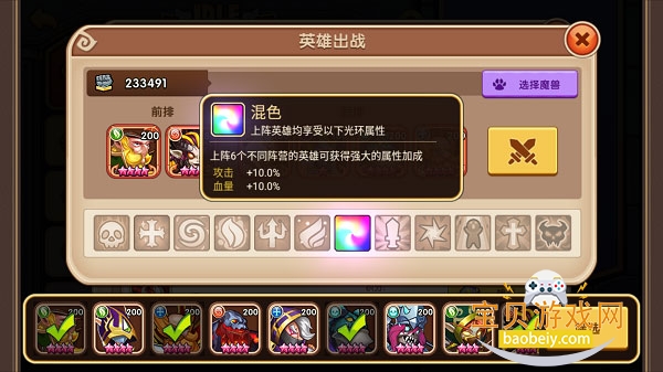 PS:请注意,前排的阵容会承受更多的伤害,大家一定要根据英雄的职业来调整英雄的站位哦!