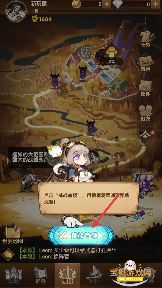 1、放置挂机轻松获取资源英雄自动战斗升级。