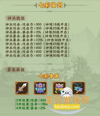 目前游戏蓝色装备只有灵玉套装,分为4件套,凑齐复数套装后会有相对应的套装属性,灵玉神枪作为攻击类武器而且与多数葫芦娃有着缘分效果加成,推荐作为前期过度所使用的主要攻击武器。