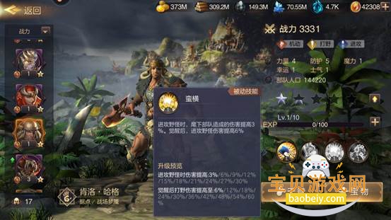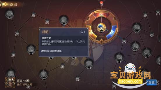 打野技能是圣光接引,技能满星觉醒后打野的伤害提升百分之十五,驻守巢穴效率提高百分之二十,还有一个很重要的效果,打野经验提升百分之十,很实用的一个打野技能,如果只是打野怪,不驻守巢穴的话,甚至可以不用觉醒,但是此技能唯一的遗憾是加成比较低,另外一个天赋也是步兵天赋(满星技能加成:生命加成百分之十伤害加成百分之十,步兵对远程伤害增加百分之四十),实用性不太大。