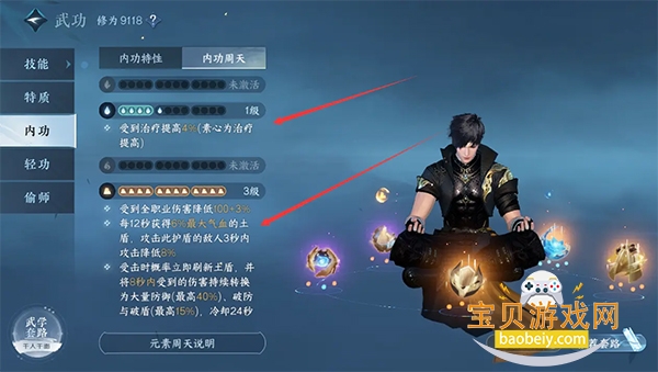 细节四:内功栏今天会全部开启细节一点我们可以搭配出3+1的内功周天