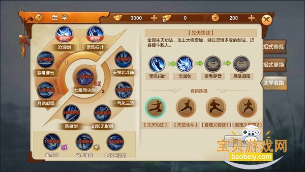 基本上所有人物都有两套预设的武学套路,这两种套路用来刷副本基本就够了。但是想要在PK上有些进展的话,可能会需要因地制宜的来自定义套路。