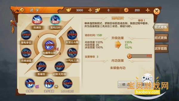 内功修炼需要在两个内功中进行选择,每个内功都有着不同的效果和属性加成,可以根据你的需求来随时进行变换。这个一般来说就是对PK中的情景进行细化的东西了,譬如你想增加速度还是防御,都可以通过心法来进行微调。