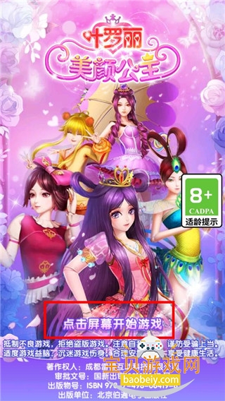 1、在宝贝游戏网下载并安装好叶罗丽美颜公主游戏后,打开点击屏幕开始游戏