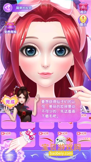 3、接着进入挑战,先试着给仙女画下眉毛吧