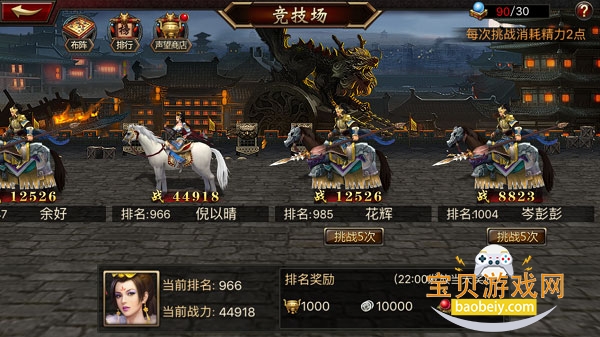 2、在挑战过程中,我们只能挑战名次相近的对手,对于已经战胜的对手,我们就可以选择挑战五次,刷声望了。