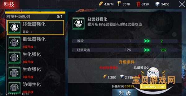 随着科技院等级的提升,可以解锁更多的兵种能力。玩家根据自身部队需求,通过消耗基础资源,升级相应的兵种能力,提升部队的作战能力。